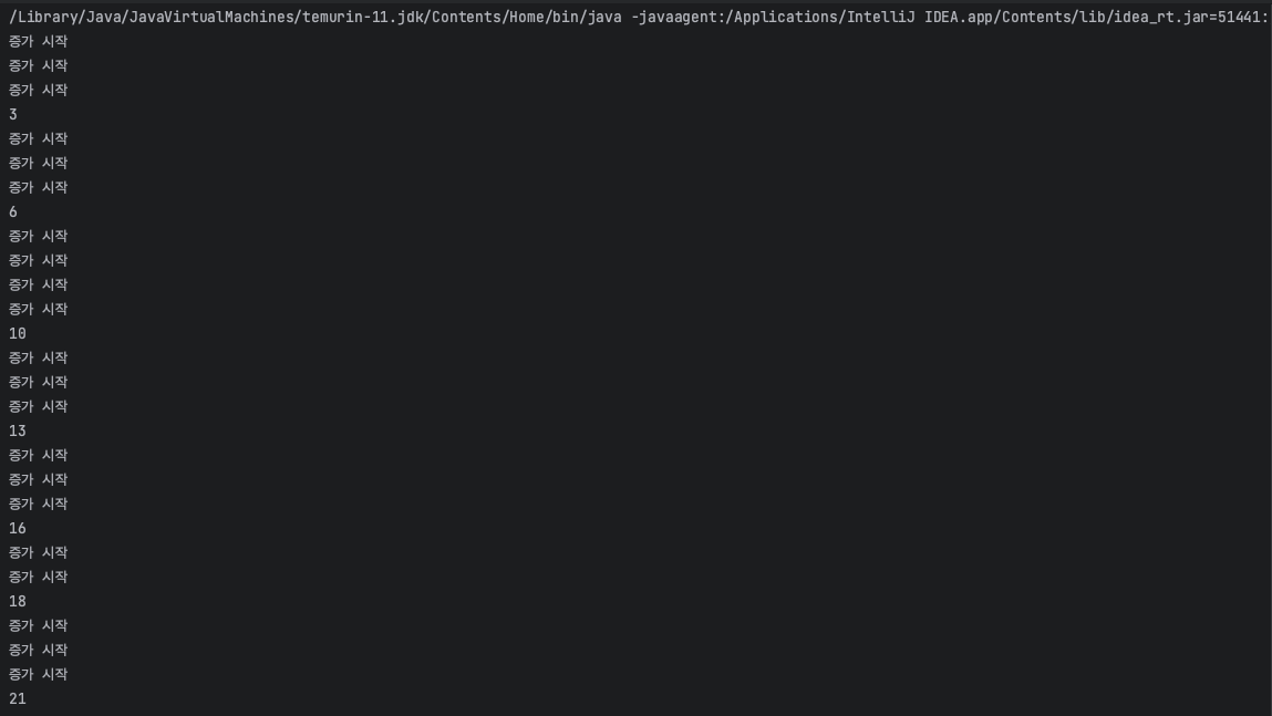 System.out.println("증가 시작");