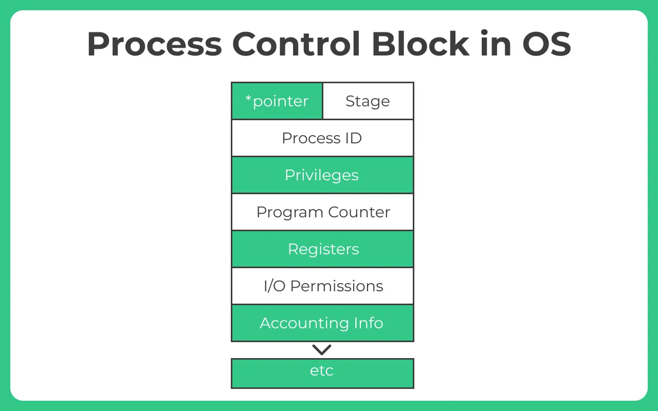 PCB는 운영체제가 프로세스를 관리하고 제어하기 위해 사용되는 자료구조이며