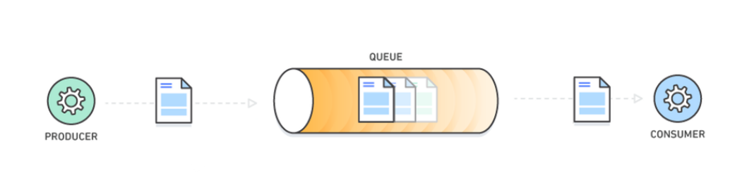 메시지를 큐(Queue) 자료구조 형태로 관리하는 버퍼를 만들어 통신하는 것을 말합니다.