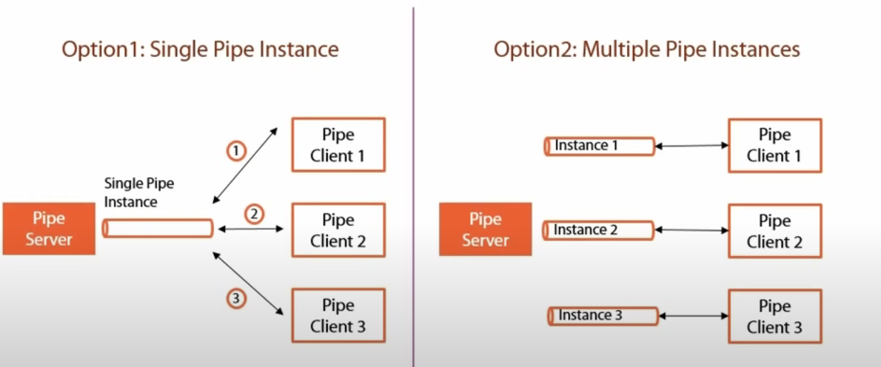 보통 서버,클라이언트용 파이프를 구분해서 동작합니다.